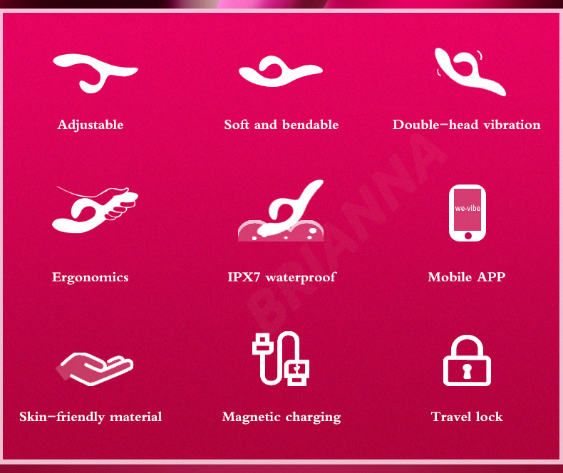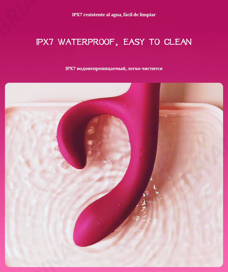 Feito em silicone macio e plástico ABS e pode ser submerso em líquidos. Suporta profundidades de até 1 metros devida a grande resistência IPx7 à água. Pode ser utilizado com lubrificantes corporais.