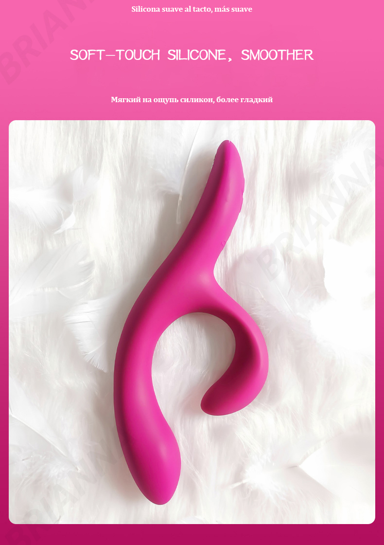 Um vibrador gracioso e potente, com funcionalidades diversificadas. O produto tem a arte de vibradores do tipo coelho e inclui dois motores vibradores para massagear com qualidade o ponto G e clitóris. Ainda há a liberdade de experimentar outro canal penetrante.