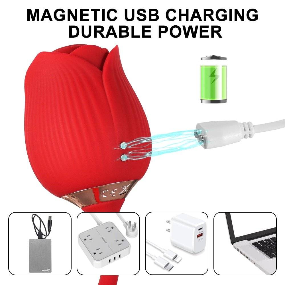 A rosa serve como dispositivo de sucção e pode alterar os modos das chupadas até 10 vezes.