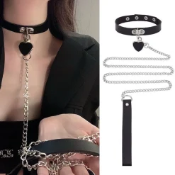 Colar Gargantilha de Coração Couro O-ring e Corrente Trela