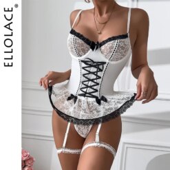 Ellolace Conjunto Espartilho Sexy Lingerie com Meia