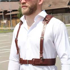 Suspensório Cinta Liga Masculino Leg Harness de Couro